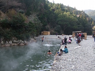 冬毎年11から翌年2月にかけて川をせき止めた、広大な露天風呂が出現する。